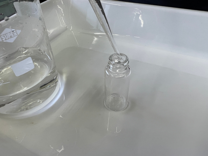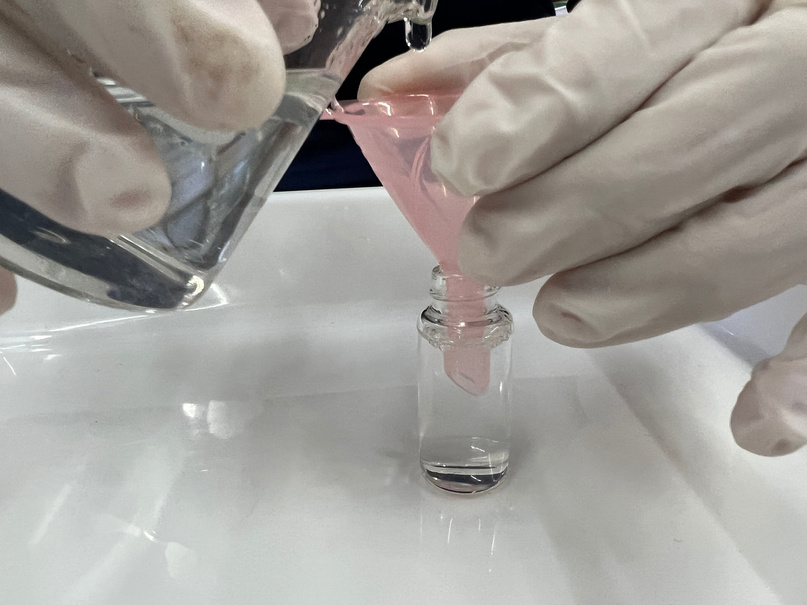 万が一こぼれてしまったときのために、トレイの上で実験を行いましょう。