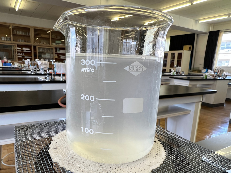 Once it reaches a boiling point and becomes transparent, please cool it down.